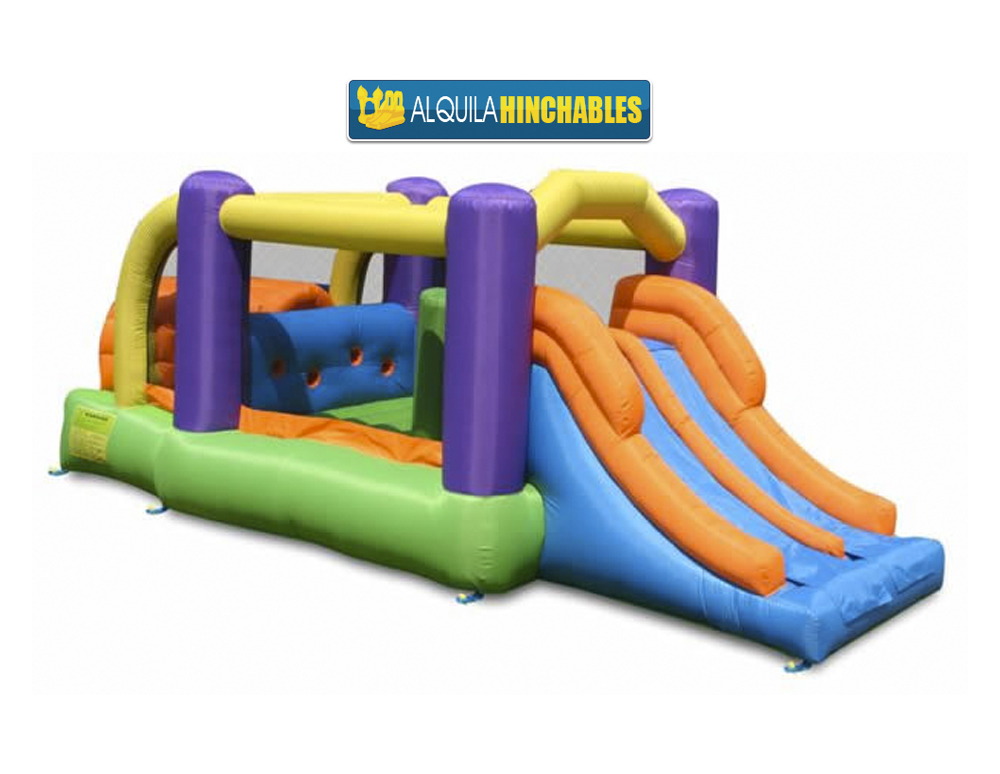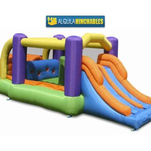 Espectacular castillo con una gran zona de saltos y con un tobogán de vértigo, ¿te atreves a tirarte por el túnel del espacio?